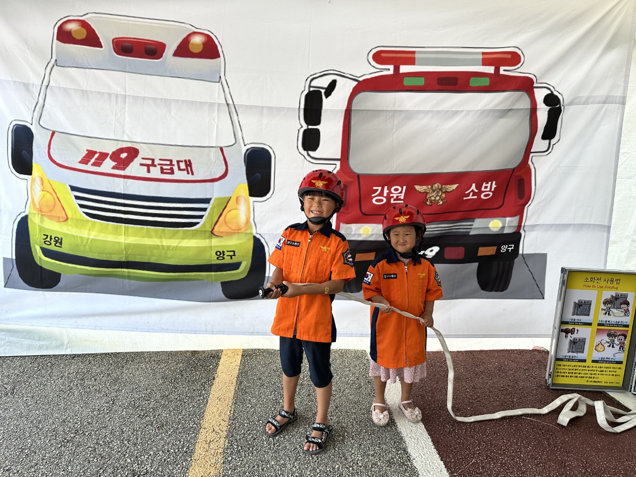 양구소방서(서장 용석진)는 최근 3일간 양구 배꼽축제 행사장에서 진행했던 119안전체험장 운영을 성황리에 마쳤다. 이번 안전체험장은 개인안전장비 착용 체험, 심폐소생술 체험 및 자동심장충격기 사용법 체험 등을 진행했으며, 특히 완강기 사용법과 전기차 화재 대처요령 등을 중점으로 교육했다.