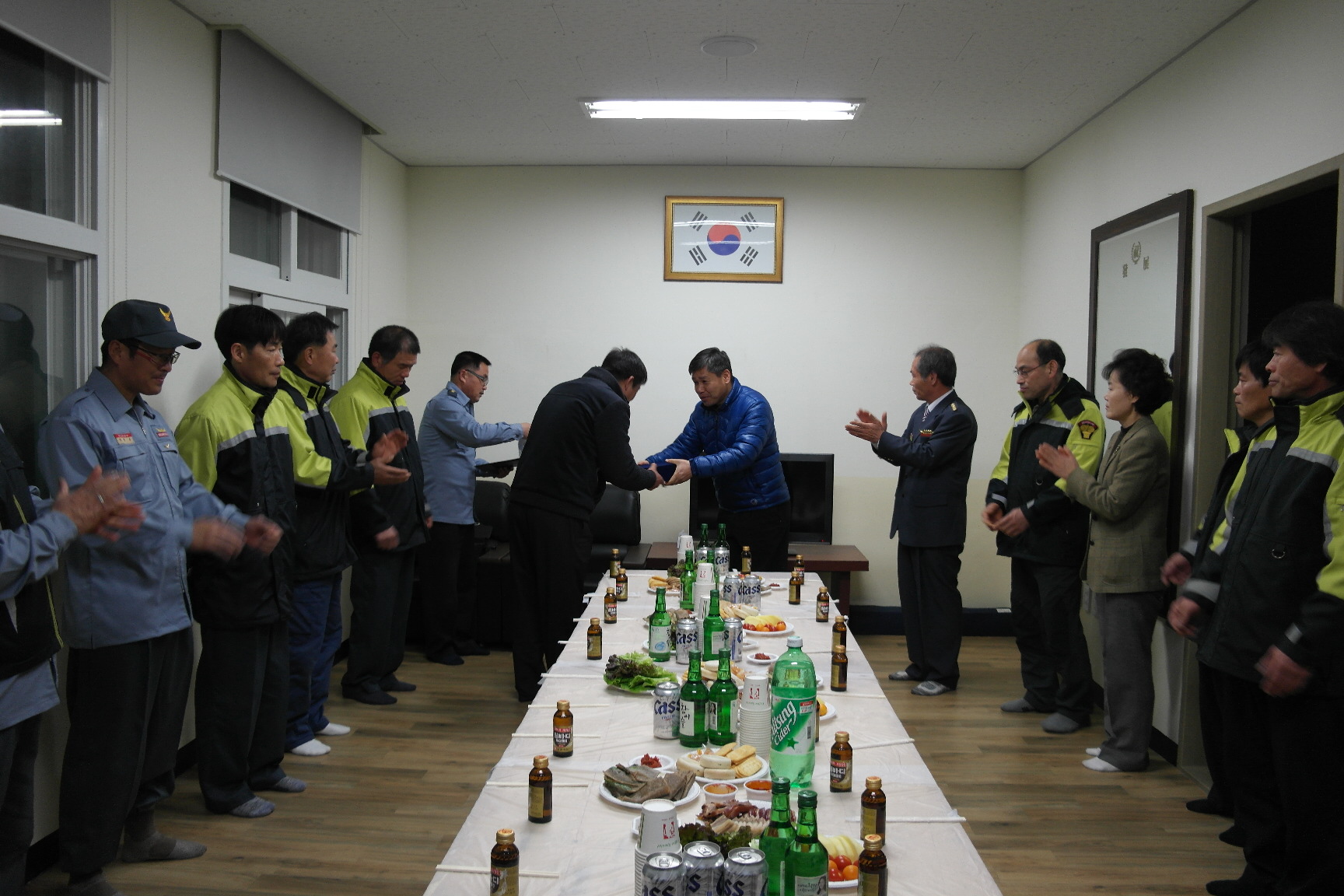 주천119안전센터 관할 한반도의용소방대(대장 : 금중경)에서 겨울철 야간대기근무 노고 격려 및 퇴임 대원 감사패 수여