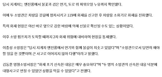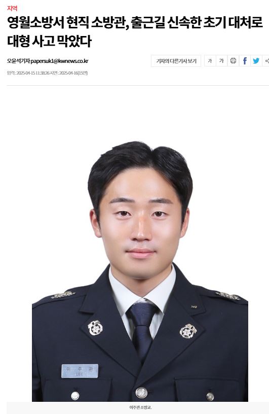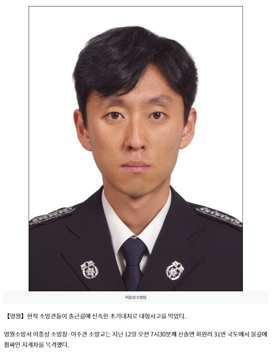 영월소방서 현직 소방관, 출근길 신속한 초기 대처로 대형 사고 막았다(25년 4월 15일)