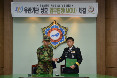영월소방서(서장 김남백)는 21일(금) 오후 1시 소회이실에서 육군 제8087부대 3대대(대대장 박대식)와 군 응급환자 이송지원 대책 등과 관련하여 상호업무협정을 체결하였다.