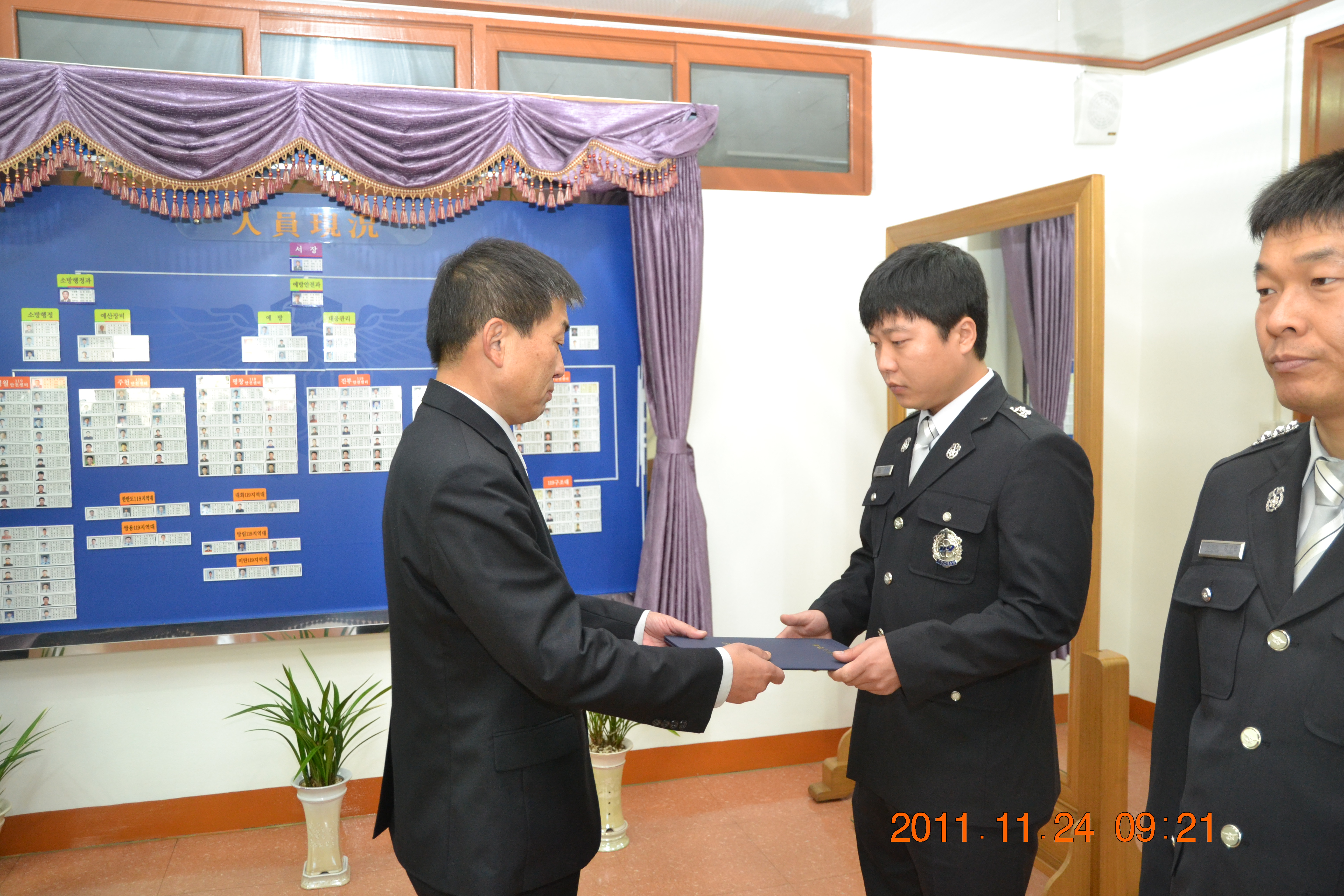 영월소방서(서장. 김남백)에서는 2011.11.24일자 자체 인사발령 신고를 가졌다
