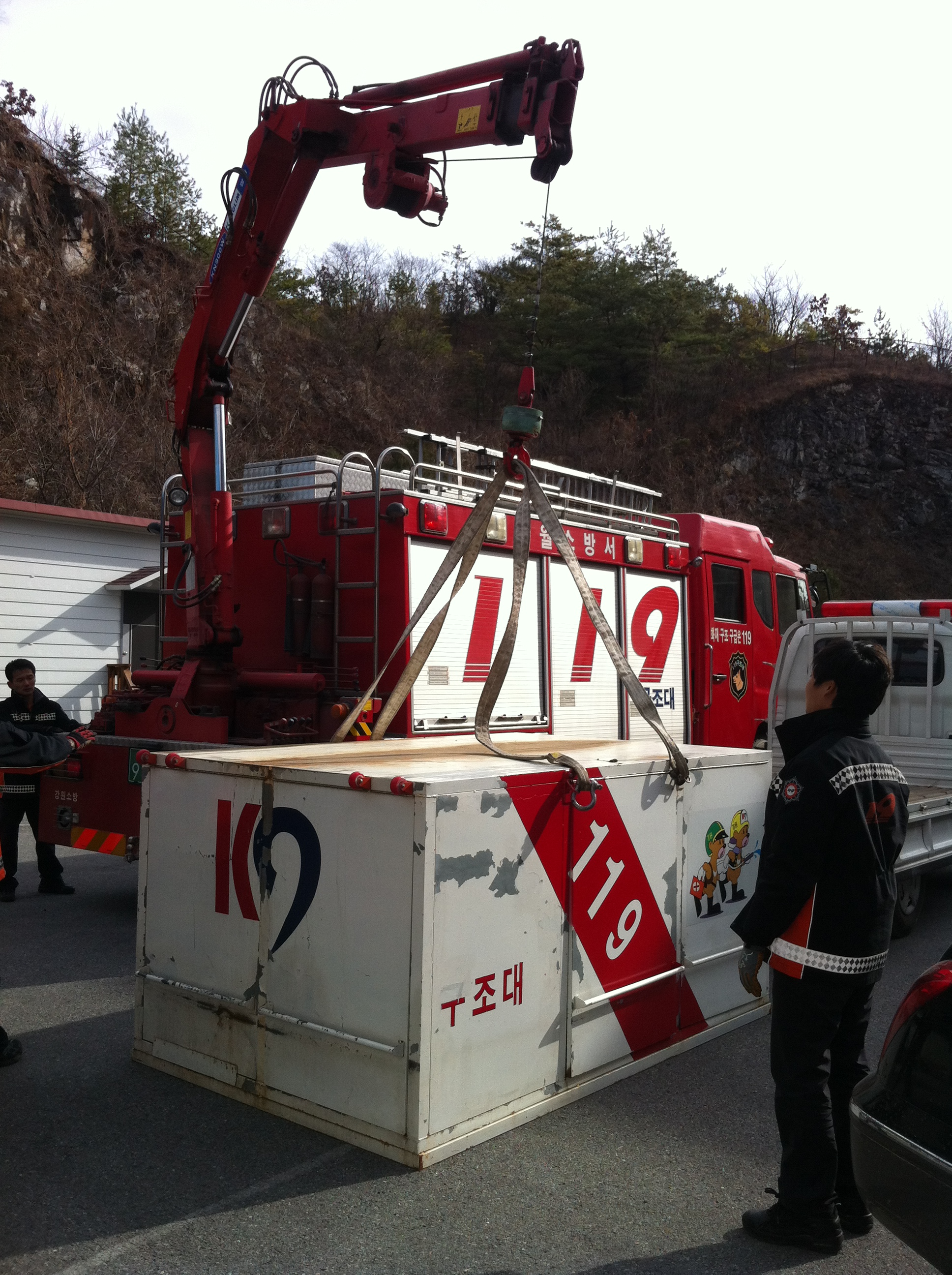 영월소방서(서장 : 김남백) 119구조대에서는 2011.12.7(수) 전술훈련으로 구조공작차 크레인 조작 훈련을 하였습니다