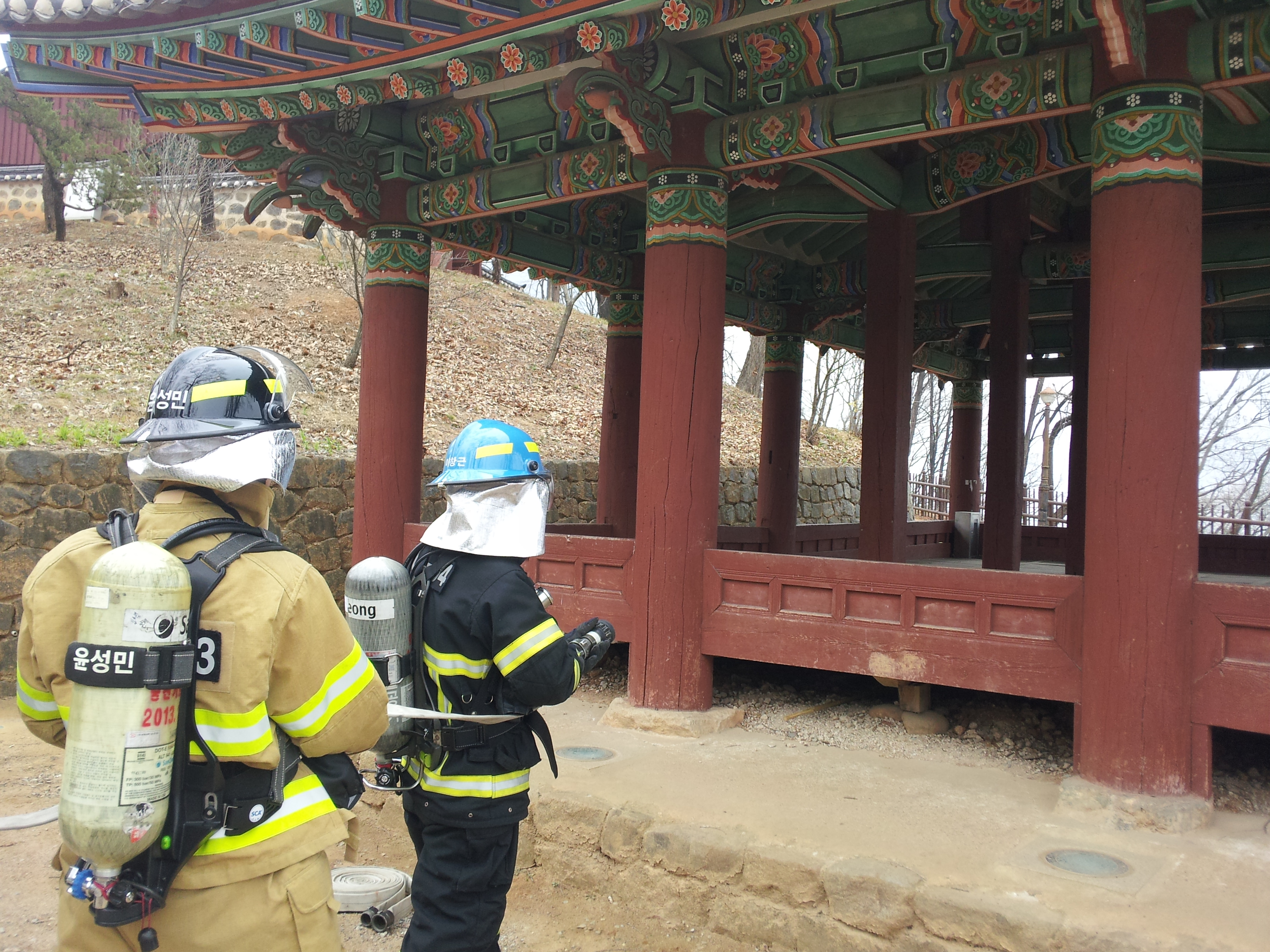 영월소방서(서장 김남백) 영월119안전센터는 4.10(화) 금강정을 대상으로 진압훈련을 실시하였습니다. 금번 훈련을 통하여 대상 문화재에 진입가능 여부 확인 및 가상 화점에 초동진압 훈련을 실시하였습니다.