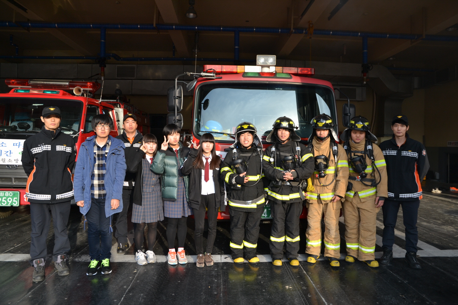 11. 21(수) 오후 2시 소방관 직업체험 프로그램에 참여한 석정여중 등 영월관내 중학생 8명을 대상으로 일일 소방관 체험을 실시하였습니다. 이날 체험에서는 방화복, 공기호흡기 등 화재현장에서 소방관이 사용하는 장비를 직접 착용한 상태에서의 연기대피체험과 더불어 소방업무 소개, 심폐소생술 체험 등으로 운영되었습니다.