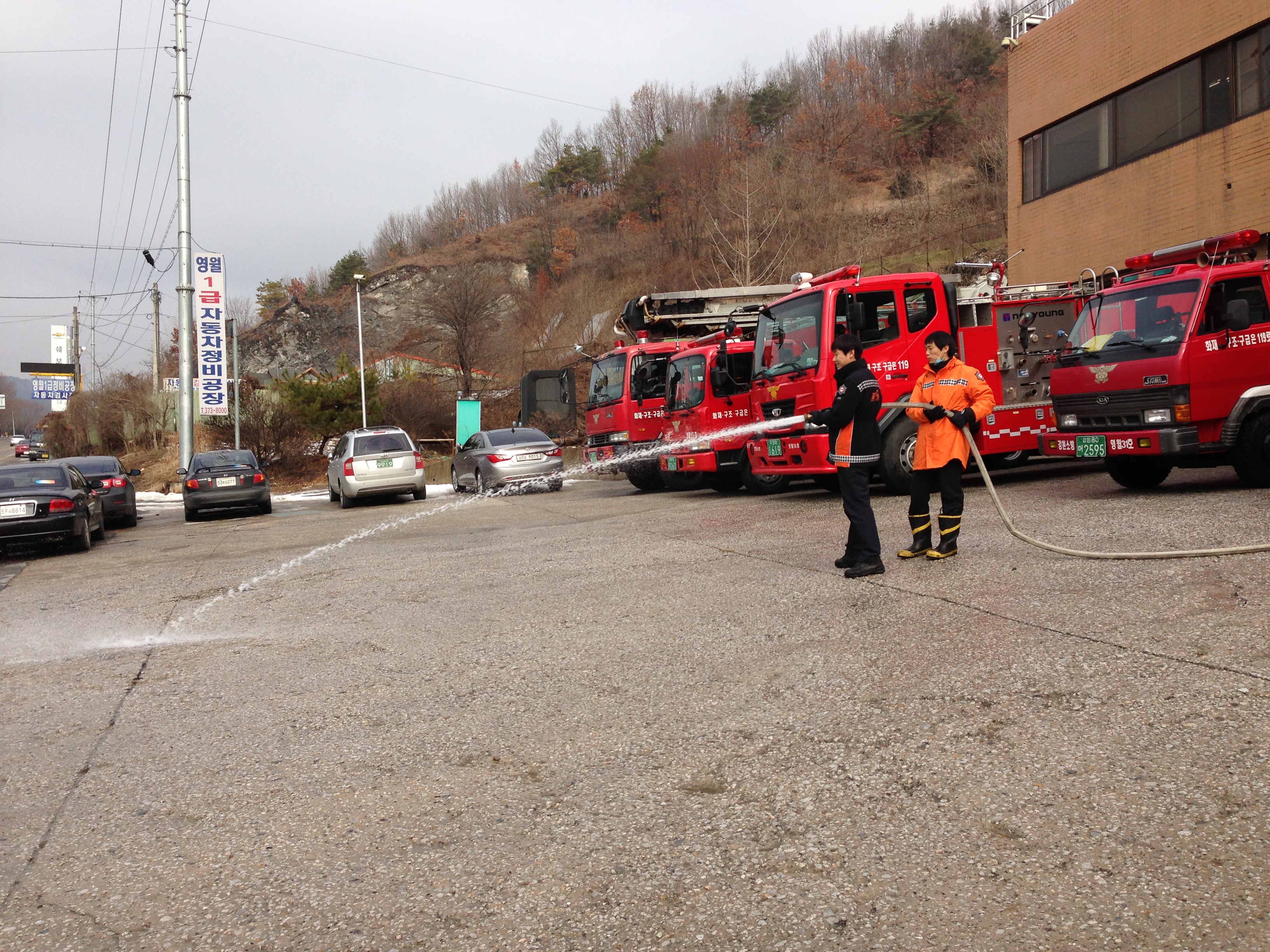 영월소방서(서장 김남백) 방호구조과에서는 모처럼 따뜻해진 날씨를 맞아 그동안 강추위에 얼어붙어있던 차고 및 주변정리를 실시하였습니다.