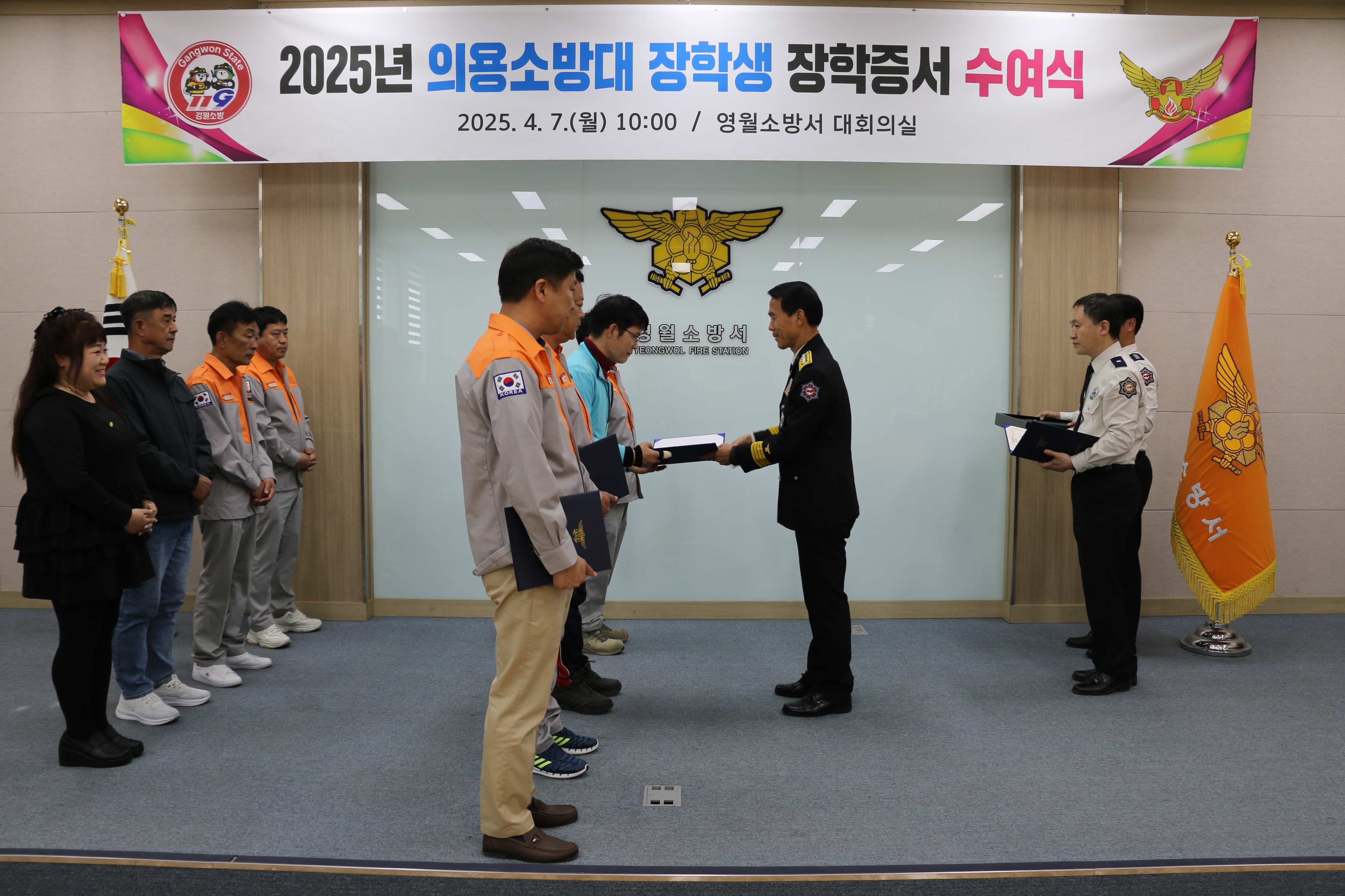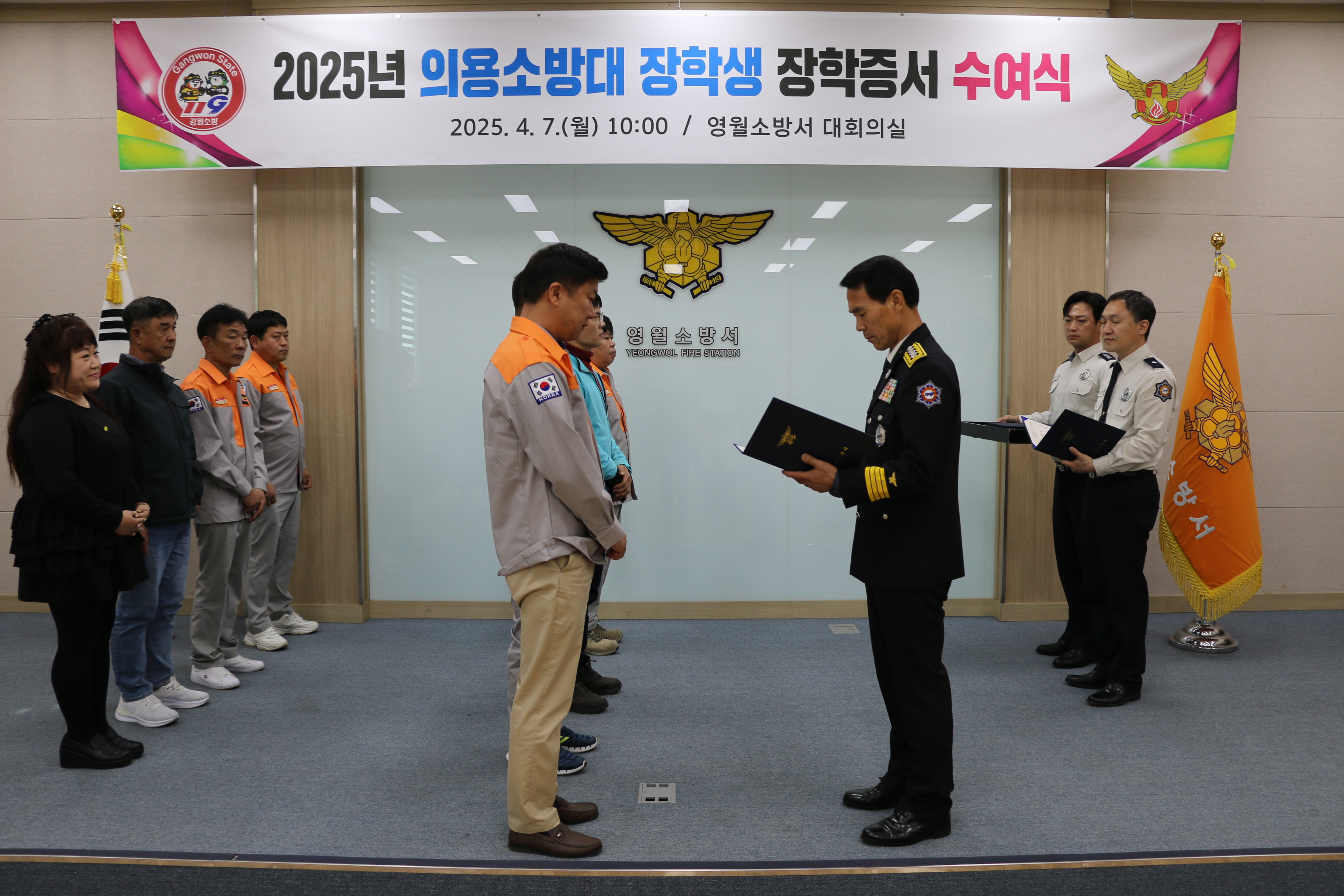 영월소방서(김동훈 서장)는 2025년 의용소방대원 자녀 21명에 대한 장학증서 수여식을 7일 개최했습니다.