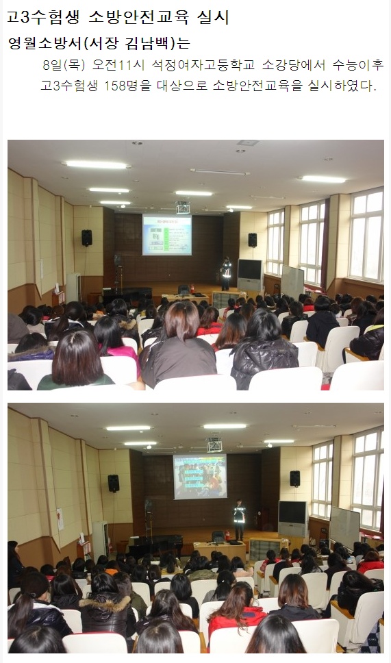 | 447 | 고3수험생 소방안전교육 실시 | 예방 | 2011-12-06 | 668 | |