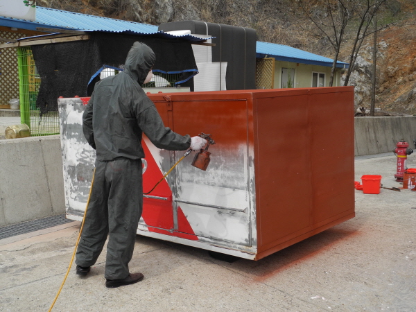 도색이 오래되어 다 떨어져 지저분해진 수난구조차가 새차가 되었습니다.