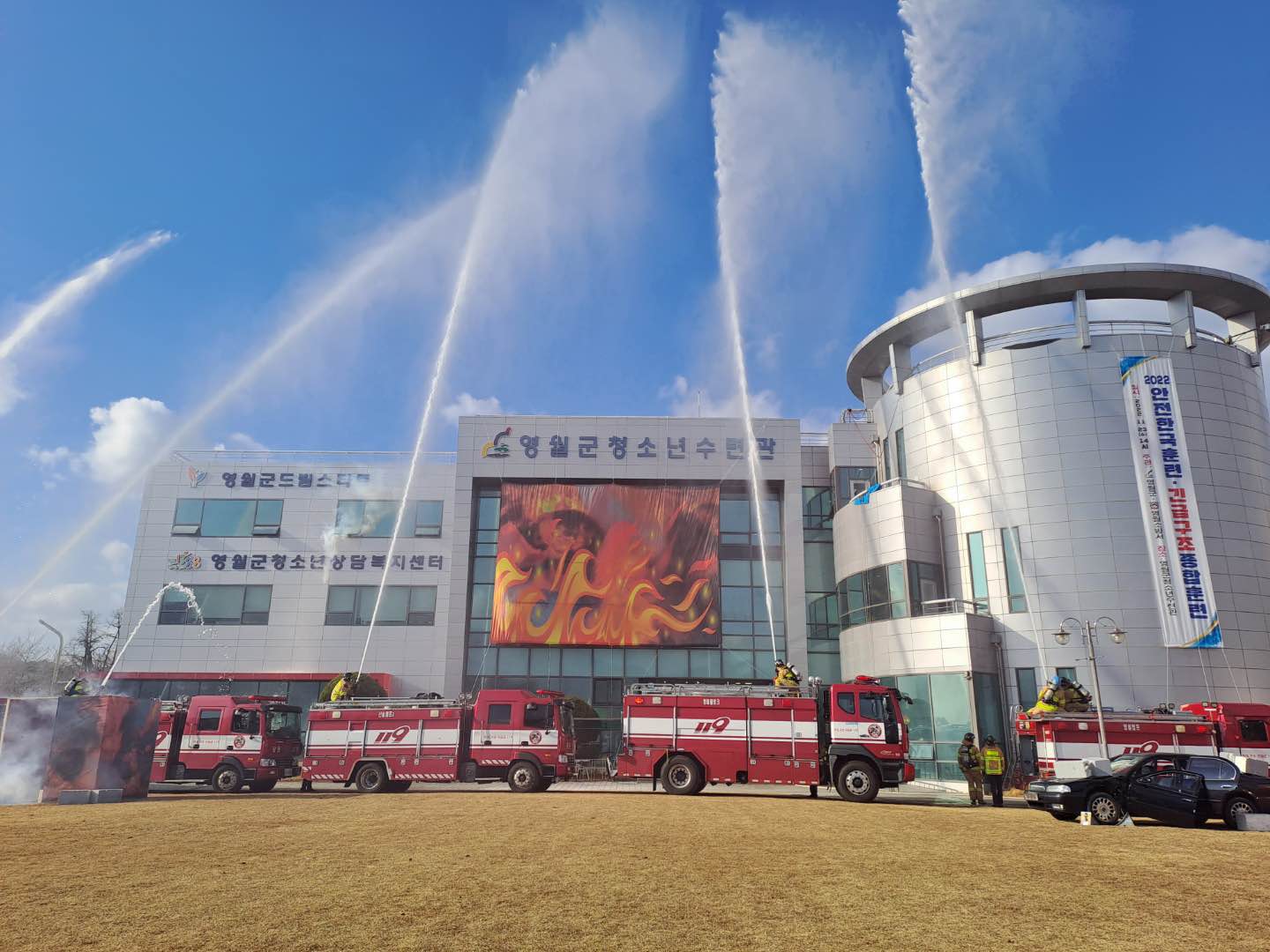 ○ 영월소방서(서장 이철상)는 23일 영월군 청소년 수련관에서 대형 재난에 대비하기 위한 ‘2022년 재난 대비 긴급구조 종합훈련’을 실시했다고 밝혔다.