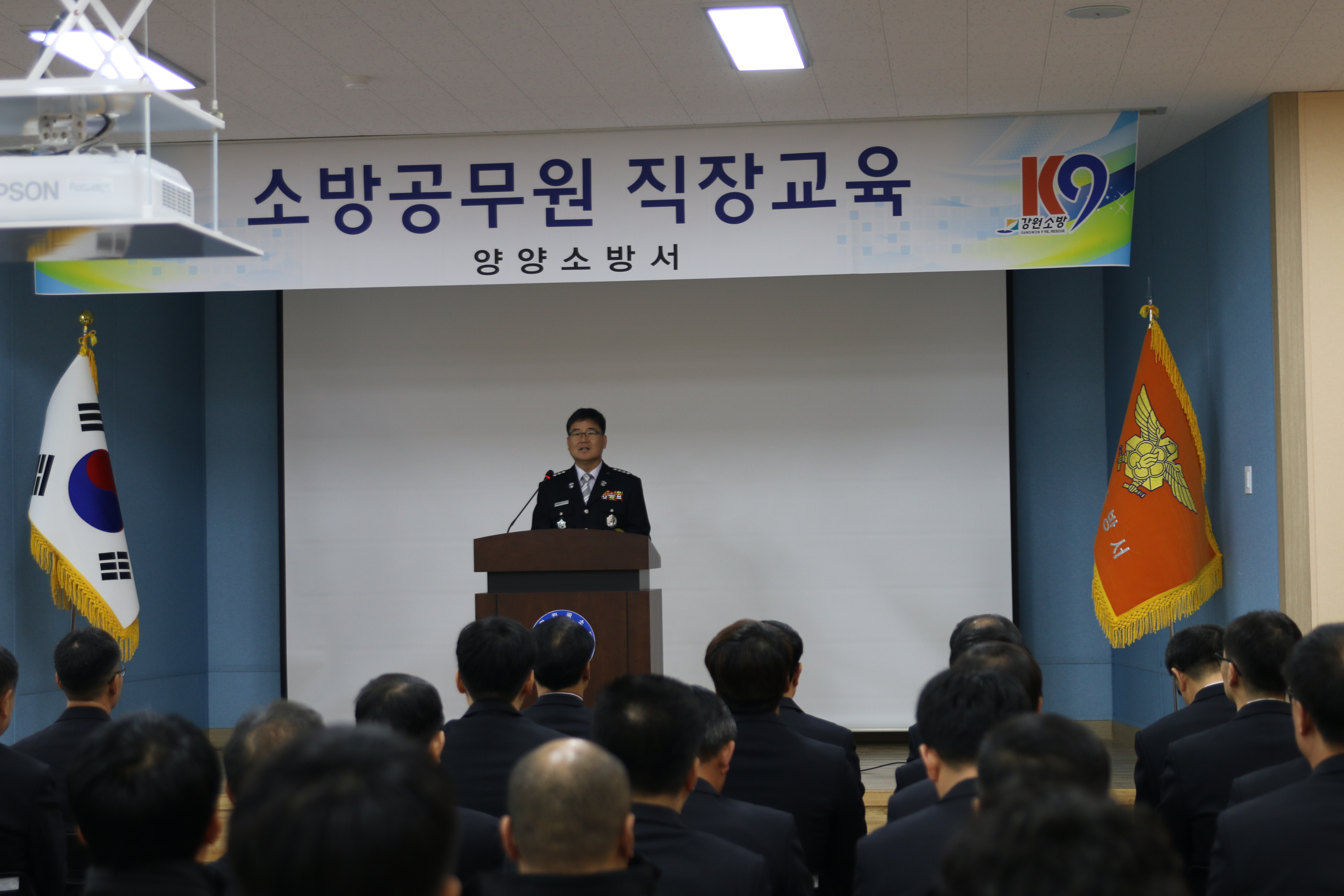 양양소방서(서장 이수남)는 5일 09시 소방서 3층 대회의실에서 소방공무원 60여명이 참석한 가운데 정신자세 확립 및 직무수행 능력 함양을 위한 직장교육훈련을 실시했다.