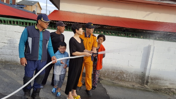 이번 교육은 전국 도서산간 등 소방차 출동곤란지역에 설치된 '호스릴 비상소화장치'사용에 관한 것으로 ▲비상소화장치 사용요령 ▲비상소화장치 제원설명 및 방수 시연 ▲비상소화장치 활용안내 교육자료 배부 ▲화재예방교육 등의 내용으로 진행됐다.